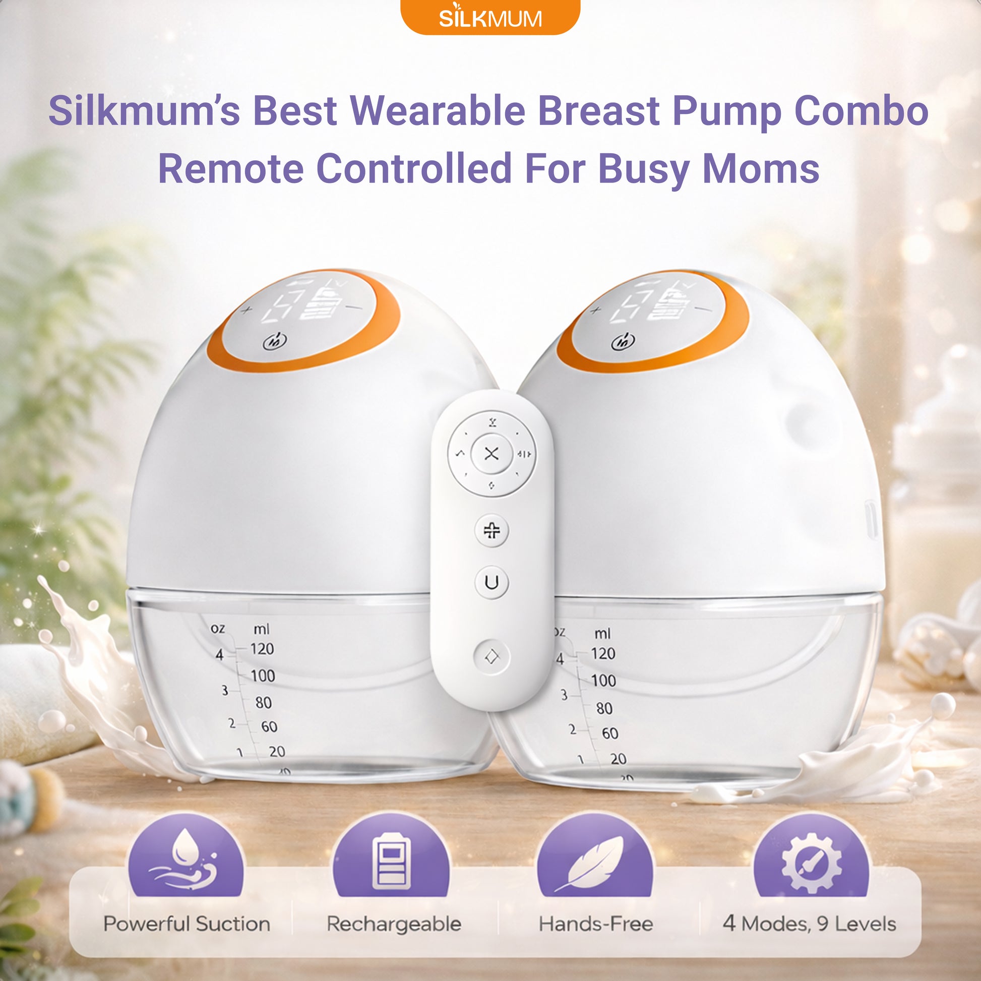 - Hands-free wearable design (130° wide angle) - comfortable, leak-resistant fit for discreet pumping.