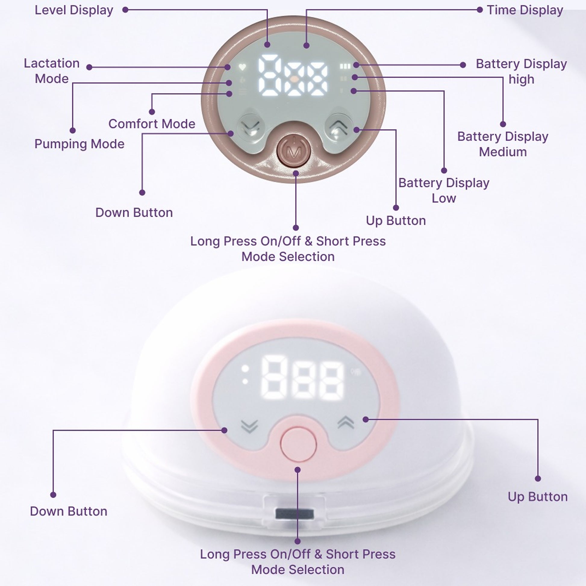 - Pumping Mode — Efficient, steady suction for maximum milk expression in minimum time